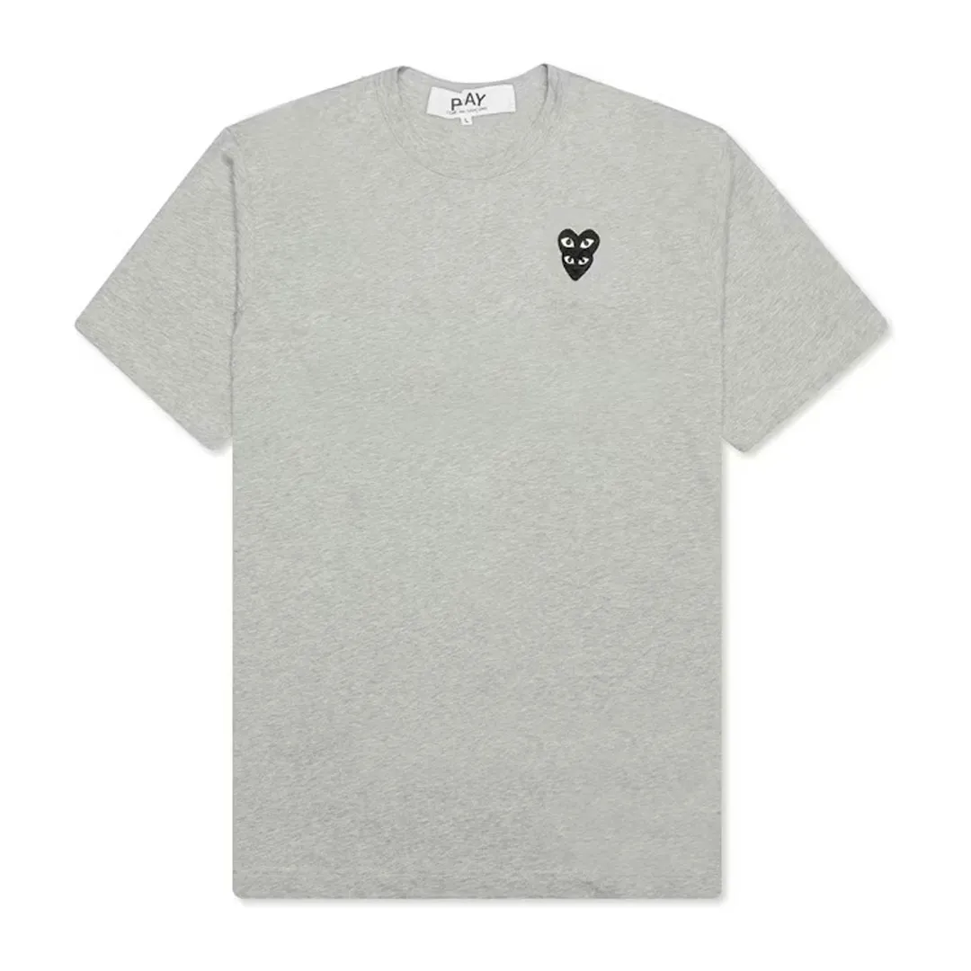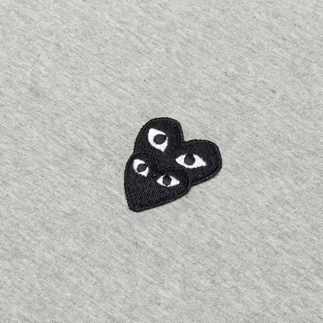 The Comme des Garçons PLAY Stacked Heart T-Shirt in Grey features a rare triple-heart variation of the iconic Filip Pagowski logo. Designed for a clean yet distinctive look, the black stacked hearts on the left chest deliver a bold signature PLAY aesthetic.