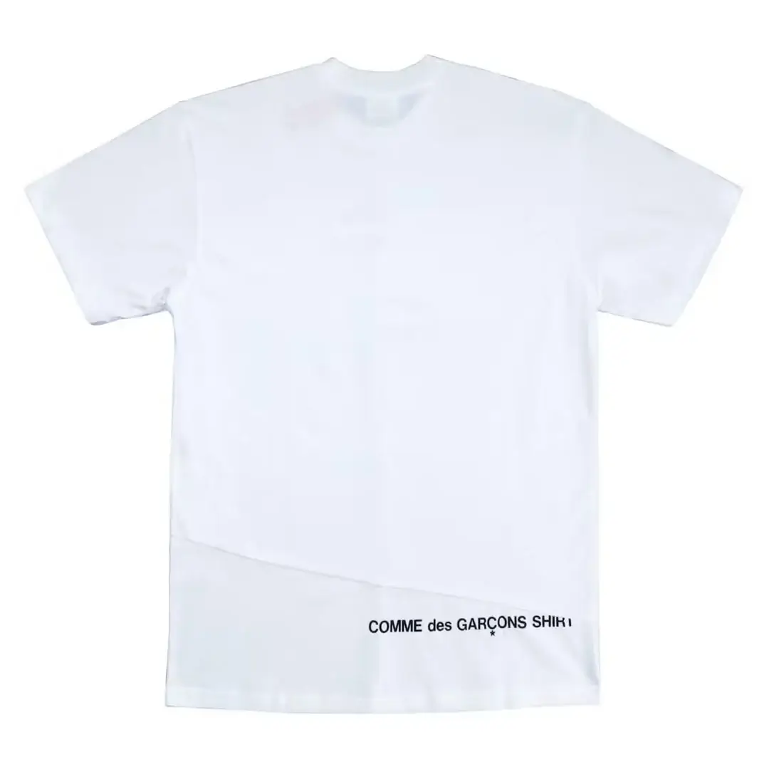 The Supreme Comme des Garçons SHIRT Split Box Logo Tee in White is a standout piece from one of Supreme’s most iconic high fashion collaborations. Blending Supreme’s legendary streetwear identity with Comme des Garçons SHIRT’s avant garde design language, this tee delivers a bold yet minimalist aesthetic.